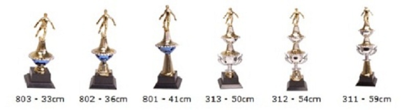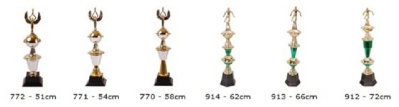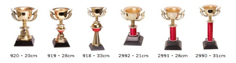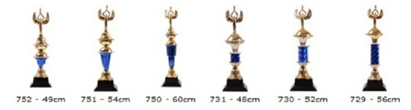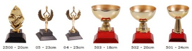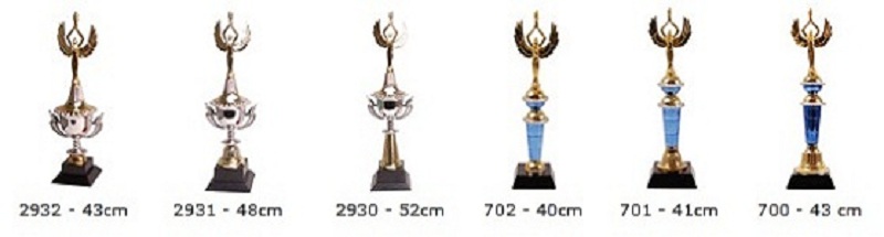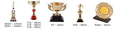 As plaquinhas dos troféus podem ser resinadas ou adesivadas.