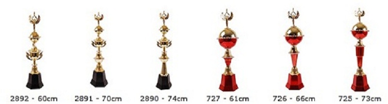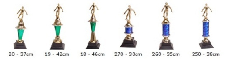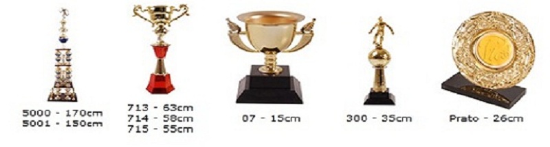 As plaquinhas dos troféus podem ser resinadas ou adesivadas.